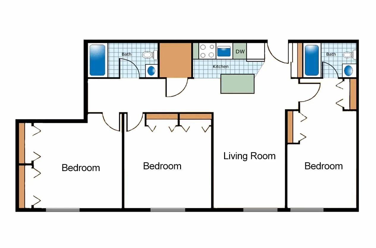 3 Bedrooms, 2 Baths, Up to 6 Tenants